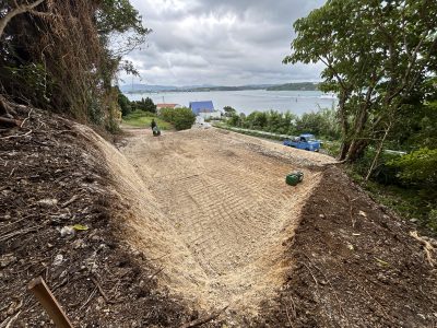 縁石、側溝、集水桝設置工事・ 浄化槽設置前床掘、均しコン打設